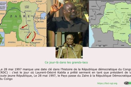 Vues : 1 983 Le 28 mai 1997 marque une date clé dans l’histoire de la République démocratique du Congo (RDC) : c’est le jour où Laurent-Désiré Kabila a prêté serment en tant que président de la toute jeune République démocratique du Congo, suite à la […]